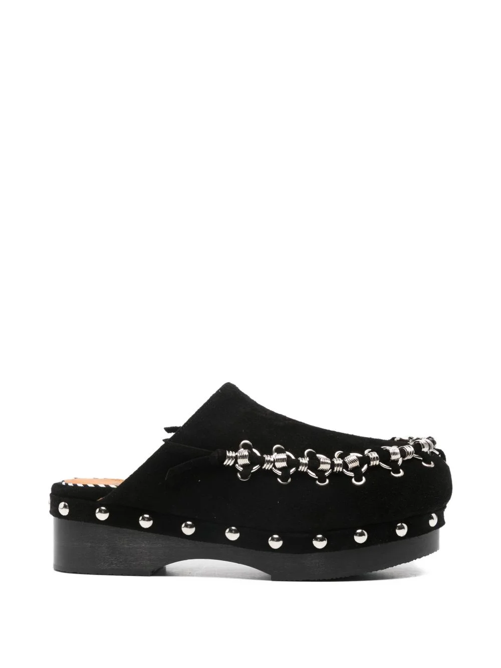 chain-detail studded mules Highlights - Black - Studded trim - Chain detail - Round toe - Platform sole - This piece comes complete with a protective dust bag. Imported Composition Outer: Calf Suede 100% Lining: Calf Leather 100% Sole: Rubber 100% SIZE & FIT Measurement HEEL 1.96 in(5 cm)