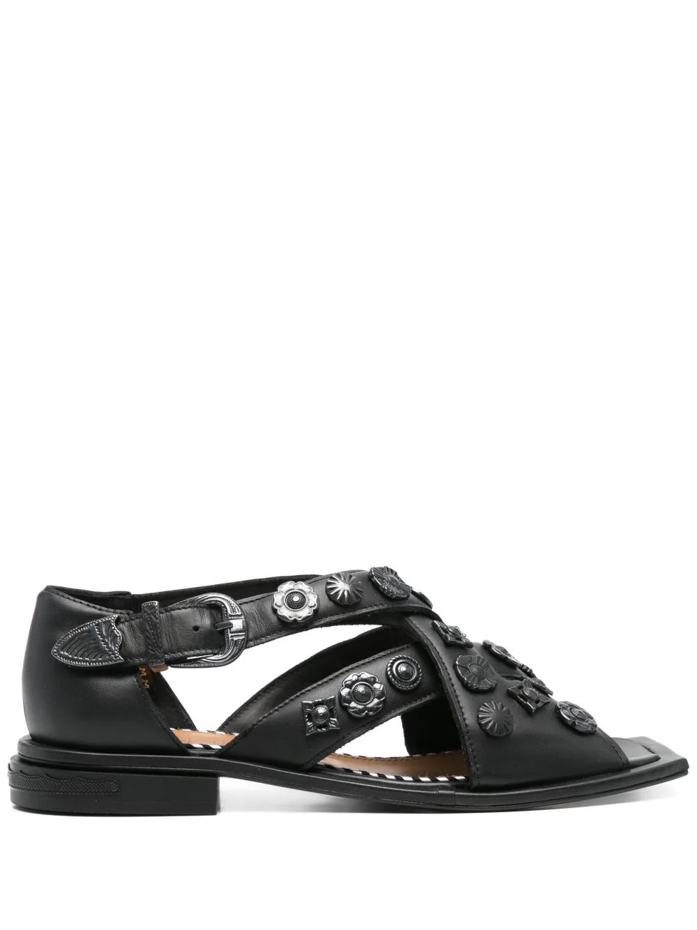 cross-strap sandals Highlights - Black - Buckle-fastening ankle strap - Branded footbed - Gunmetal-tone hardware - Square toe Imported Composition Outer: Bos Taurus 100% Lining: Bos Taurus 100% Sole: Leather 100%, Rubber 100%