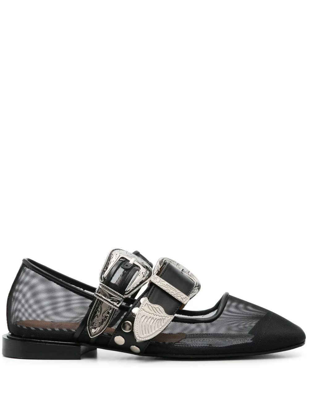 mesh ballet flat Highlights - Black - Side buckle fastening - Branded leather insole - Rubber sole - This piece comes complete with a protective dust bag. Imported Composition Outer: Polyamide 70%, Calf Leather 30% Sole: Calf Leather 100%, Rubber 100% Lining: Calf Leather 100% SIZE & FIT Measurement HEEL 1.18 in(3 cm)