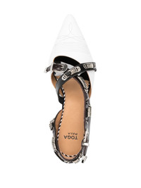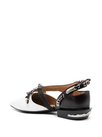 panelled leather ballerina shoes Highlights - White/black - Calf leather - Panelled design - Pointed toe - Buckle fastening - Low heel Imported Composition Outer: Bos Taurus 100% Lining: Bos Taurus 100% Sole: Calf Leather 100% SIZE & FIT Measurement HEEL 0.78 in(2 cm)