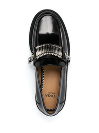 buckle-detail leather loafers Highlights - Black - Calf leather - Smooth grain - Glossy finish - Silver-tone hardware - Decorative buckle detail - Tonal stitching - Round toe - Slip-on style - Branded leather insole - Leather stacked sole Imported Composition Outer: Bos Taurus 100% Lining: Bos Taurus 100% Sole: Leather 100% SIZE & FIT Measurement HEEL 0.98 in(2.5 cm) Sole height 0.59 in(1.5 cm)