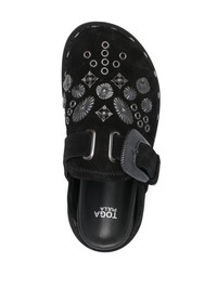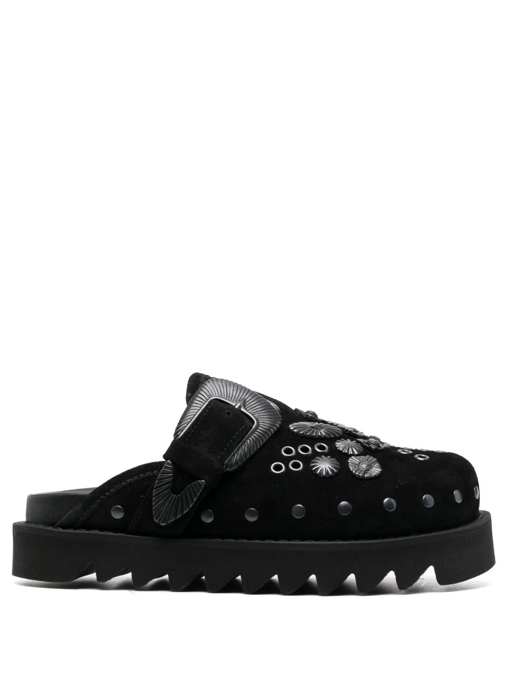 Sabot metal suede mules Highlights - Black - Leather - Suede panels - Silver-tone stud embellishment - Decorative buckle detailing - Eyelet detailing - Round toe - Slip-on style - Branded leather insole - Ridged rubber sole Imported Composition Leather 100% SIZE & FIT Measurement HEEL 1.57 in(4 cm) Sole height 0.98 in(2.5 cm)
