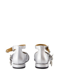 buckle-strap pointed ballet flats Highlights - Silver - Calfskin leather - Ankle strap - Multiple buckles - Pointed toe - Flat sole Imported Composition Sole: Rubber 100% Outer: Calf Leather 100% Lining: Calf Leather 100%