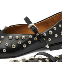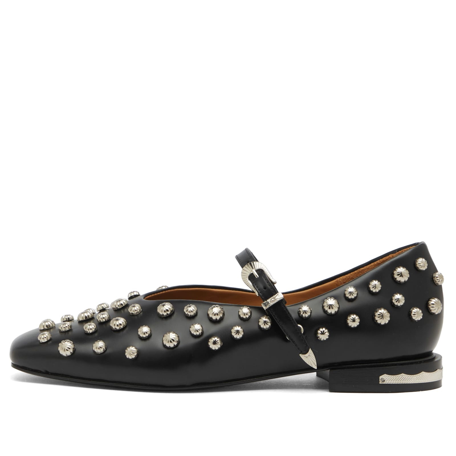 These All Over Studded Ballet Shoes embody TOGA PULLA’s signature aesthetic, where Tokyo's avant-garde energy combines with a refined Western sensibility. The contemporary design is dominated by silver-tone stud embellishment, finished with a buckle strap closure. - Leather Construction - Metal Branding - Leather Sole