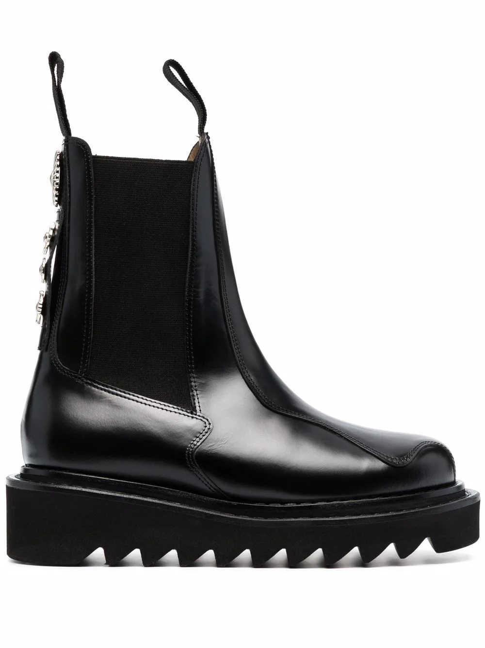 ridged sole Chelsea boots Highlights - Black - Bos taurus - Panelled design - Double pull-tab at the opening - Silver-tone hardware - Ridged rubber sole Imported Composition Leather 100% SIZE & FIT Measurement CIRCUMFERENCE 9.05 in(23 cm) HEEL 2.16 in(5.5 cm) HEIGHT 7.48 in(19 cm) Sole height 1.37 in(3.5 cm)