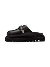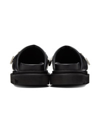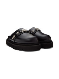 Buffed leather slip-on loafers in black. Signature silver-tone hardware at vamp. · Strap at padded vamp · Logo printed at molded leather footbed · Treaded foam rubber platform sole · Platform: H1 in Available exclusively at SSENSE. Supplier color: Black