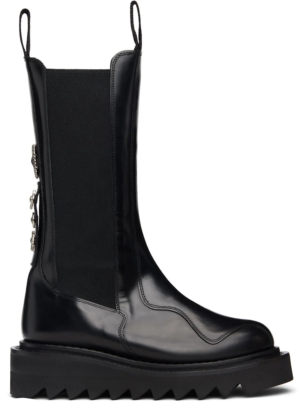 SSENSE Exclusive Black Mid Calf Leather Chelsea Boots