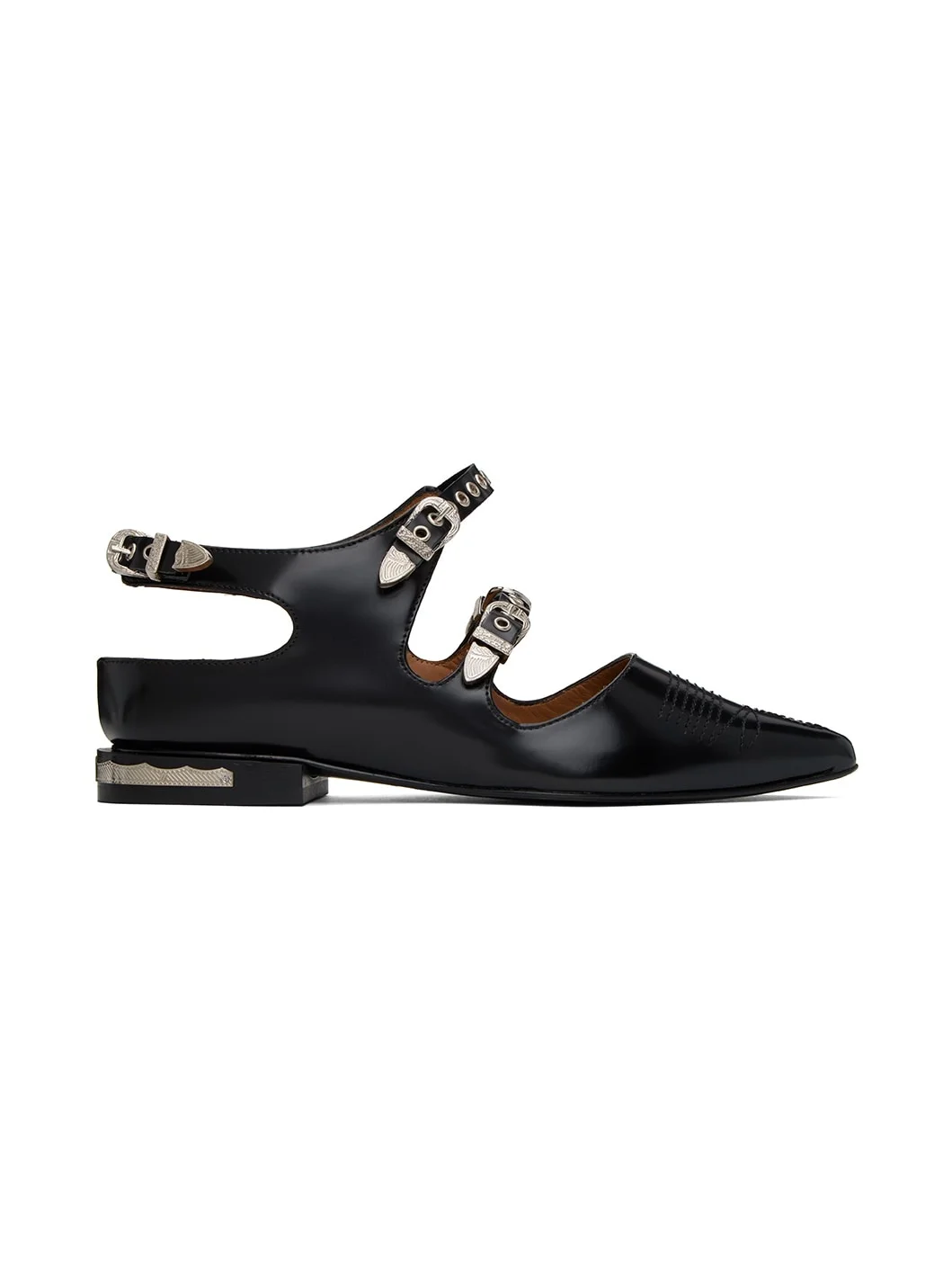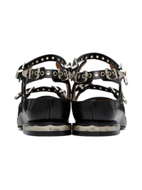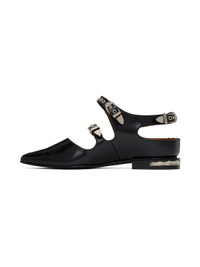 Polished leather oxfords in black. · Topstitching at pointed toe · Pin-buckle straps at vamp and heel · Cutout at heel counter · Plaque at stacked leather block heel · Leather sole · Engraved silver-tone hardware Available exclusively at SSENSE. Supplier color: Black Leather. Made in Portugal 241492F120002