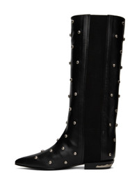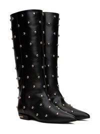 Knee-high buffed leather boots in black. Studs throughout. · Pointed toe · Elasticized gusset at inner side · Buffed leather lining · Stacked leather heel with rubber injection · Leather sole Available exclusively at SSENSE. Supplier color: Black