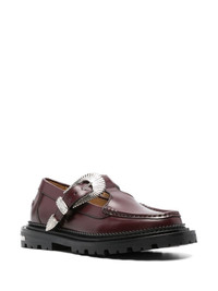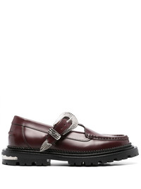 side-buckle 40mm leather loafers Highlights - Burgundy - Calf leather - Smooth grain - Western style - Embossed detail - Silver-tone hardware - Round toe - Side buckle fastening - Branded leather insole - 40mm block heel - Rubber sole Imported Composition Leather 100% SIZE & FIT Measurement HEEL 1.57 in(4 cm) Sole height 1.18 in(3 cm)