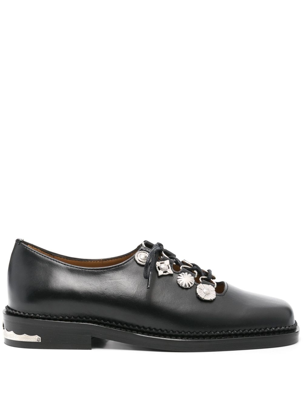stud-detailed shoes Highlights - Black - Front lace-up fastening - D-ring findings - Branded insole - Metallic heel counter - Flat sole Imported Composition Outer: Bos Taurus 100% Lining: Bos Taurus 100% Sole: Leather 100%