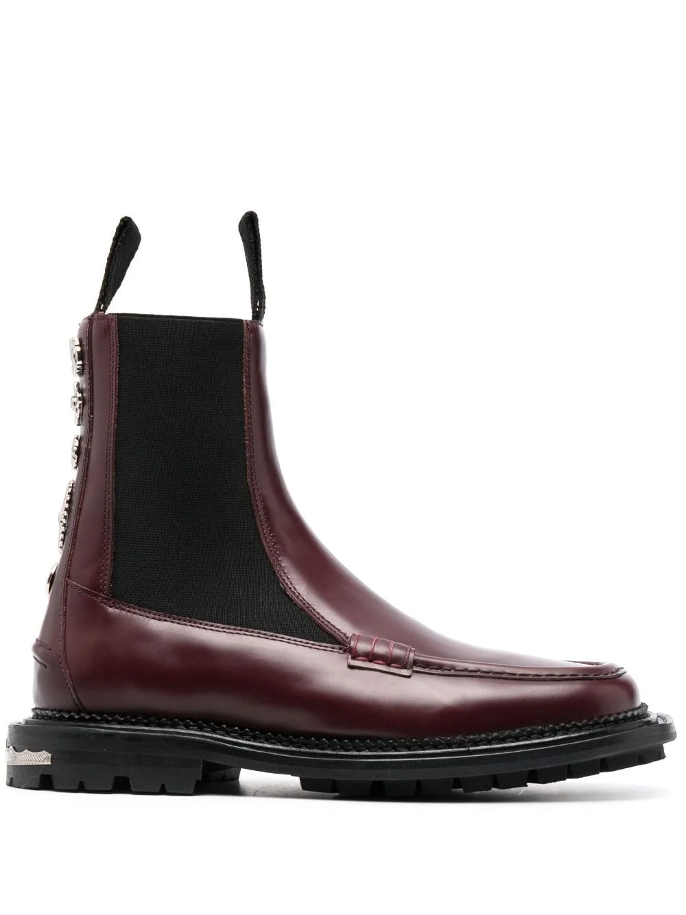 stud-embellished leather ankle boots Highlights - Burgundy - Leather - Square toe - Silver-tone stud embellishment - Elasticated side panels - Double pull-tab at the opening - Metallic heel counter - Flat sole Imported Composition Leather 100% SIZE & FIT Measurement CIRCUMFERENCE 8.26 in(21 cm) HEEL 1.96 in(5 cm) HEIGHT 5.9 in(15 cm) Sole height 0.78 in(2 cm)