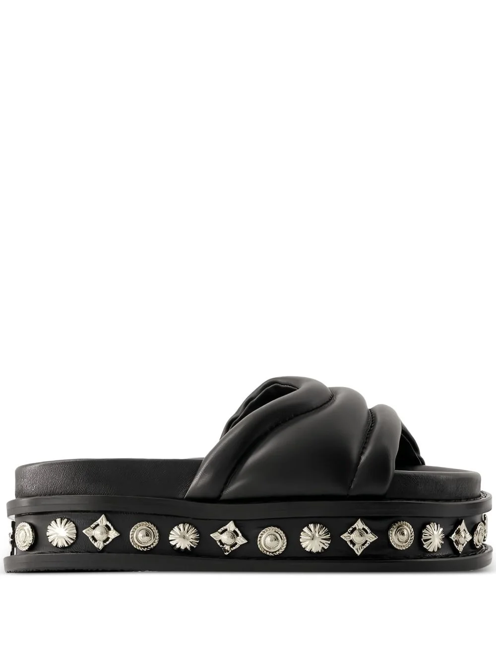 studded slides Highlights - Black - Platform sole - Single toe strap - Stud detailing Imported Composition Lining: CALFSKIN 100% Sole: Rubber 100% Outer: CALFSKIN 100%