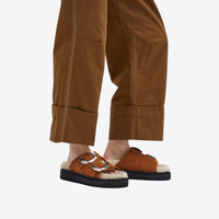 The Toga Pulla fluffy sandals embody avant-garde luxury, with its striking aesthetic. Featuring a soft, plush faux fur footbed and sleek thick suede strap, adorned with a statement silver-tone buckle boasting an intricate pattern, this refined shoe offers a blend of bold design and sumptuous comfort. The standout sandal is guaranteed to redefine your style, with a touch of modern opulence. - 100% Leather Suede Uppers - Faux Fur Footbed - Silver-Tone Buckle - Rubber Sole - Embossed Branding