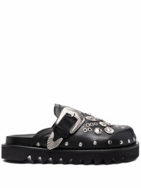 black leather round toe slip-on style branded insole decorative buckle detailing ridged rubber sole silver-tone hardware - heel: 4.0 centimetres, sole height: 2.5 centimetres - Color: BLACK - Made in: Portugal - Designer Style ID: AJ1058 FTGPW1058 BLACK Composition and care Leather: 100.0%