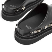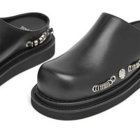 Designed by Yasuko Furuta, these TOGA Mules reflect the Tokyo based brand’s avant garde aesthetic. Upgrading a familiar silhouette, striking stud details add a distinctive look to the edges of these smooth leather shoes. - Leather Upper - Slip On - Stud Detailing - Rubber Outsole