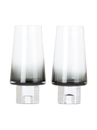 Set of two mouth-blown glasses in black. Logo engraved at base. Suitable for cold liquids. Handwash only. H6.2 x W3.1 x D3.1 in Supplier color: Black