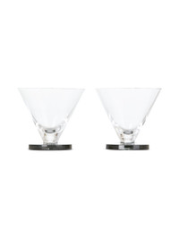 Set of two mouth-blown glasses. Logo engraved at base. Suitable for cold liquids. Dishwasher safe. H4 x W3.3 x D3.3 in Supplier color: Smoke