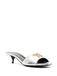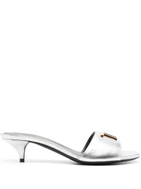 50mm logo-plaque sandals Crafted from metallic leather, these mules by TOM FORD arrive in a striking silver-tone design, accented with a contrasting TF logo plaque. They are elevated by a low heel, adding a touch of sophistication to the pair. Highlights - Silver-tone - Calf leather - Metallic finish - Gold-tone logo plaque - Round open toe - Branded leather insole - Low heel Made in Italy Composition Lining: Calf Leather 100% Sole: Calf Leather 100% Outer: Calf Leather 100% SIZE & FIT Measurement HEEL 1.57 in(4 cm)