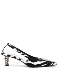 70mm zebra-print slingback pumps These pumps from TOM FORD boast a crystal-embellished heel that illuminates the pair. Rendered in a zebra-print they feature a slingback strap. Highlights - Black/white - Calf leather - Zebra print - Rhinestone embellishment - Mid heel Made in Italy Composition Sole: Calf Leather 100% Outer: Calf Leather 100%, Fabric 100% Lining: Calf Leather 100% SIZE & FIT Measurement HEEL 2.75 in(7 cm)