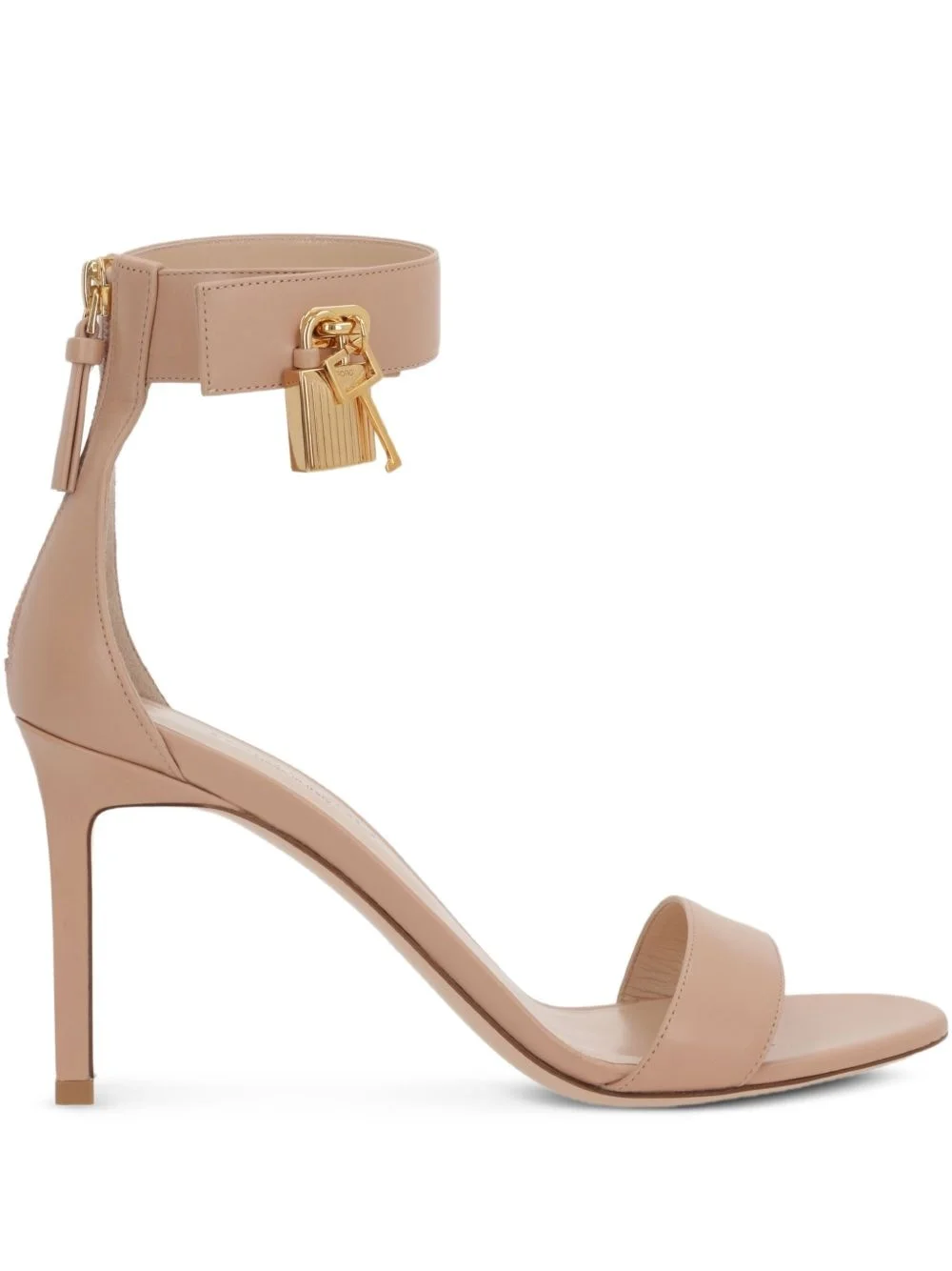 85mm Padlock sandals Highlights - Blush beige - Rear zip fastening - Padlock detail - 85mm stiletto heel Made in Italy Composition Sole: Calf Leather 100% Lining: Calf Leather 100% Outer: CALFSKIN 100% SIZE & FIT Measurement HEEL 3.34 in(8.5 cm)