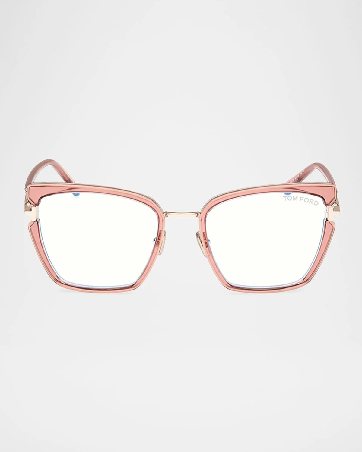 - TOM FORD butterfly optical glasses in acetate - Lens/bridge/temple (in mm): 54-19-140 - Adjustable nose pads - T logo hinge temples - Thin, tapered arms - Capped earpieces - Made in Italy - Proposition 65 warning for California residents
