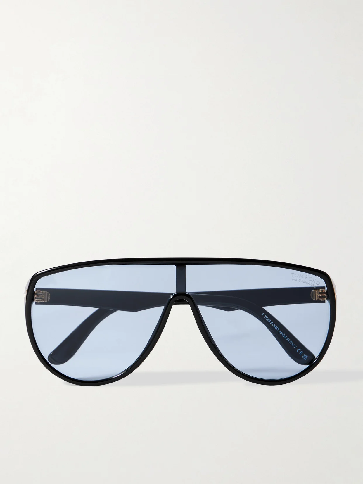 TOM FORD Eyewear's 'Achilles' sunglasses offer a sleek, modern take on classic aviator styles. Made in Italy from glossy acetate, they feature bold lines and a streamlined shape featuring blue-tinted lenses.