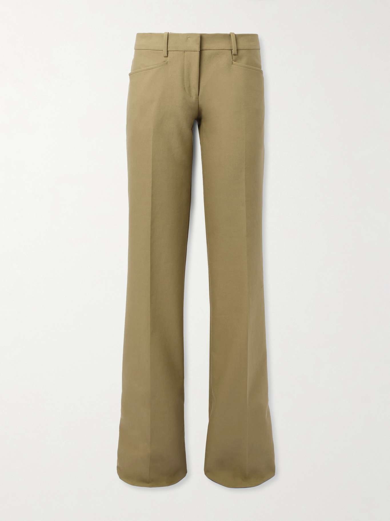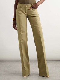 EDITORS'NOTES You can always rely on TOM FORD for sharp tailoring that's so celebratory of the female form. These pants are cut from cotton blended with a hint of stretch and are pressed with neat creases from the top to the floor-pooling hems. Wear yours with a tonal tank or bodysuit. Large to size. See Size & Fit notes. SIZE & FIT Model measurements: - Fits large to size, take one size smaller than normal - Low-rise, designed for a straight-leg fit - Lightweight, non-stretchy fabric - Model is 177cm/ 5'10", normally wears an IT 38 and is wearing an IT 36 - Bust: 79cm/ 31" - Waist: 61cm/ 24" - Hip: 89cm/ 35" DETAILS & CARE - Army green stretch-cotton - Concealed button and zip fastening at front - 97% cotton, 3% elastane - Machine wash