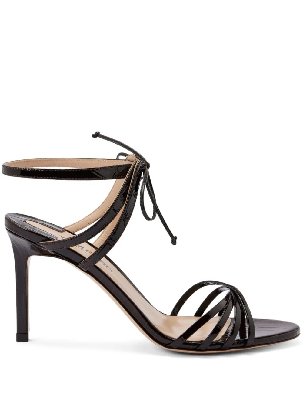 105 mm embossed-crocodile sandals Highlights - Brown - Calf leather - Embossed crocodile effect - Almond open toe - Crossover strap at the toe - Branded leather insole - Leather sole - High stiletto heel - Tie-fastening ankle strap Made in Italy Composition Sole: Calf Leather 100% Outer: Goat Skin 100% Lining: Goat Skin 100% SIZE & FIT Measurement HEEL 4.13 in(10.5 cm)