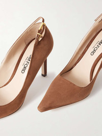 EDITORS'NOTES TOM FORD updates its 'Angelina' pumps with higher back collars - the dainty buckles and cutouts nod to the signature slingback styles they're modeled on. They've been made in Italy from suede and are set on 85mm heels. SIZE & FIT - Fits true to size, take your normal size - Italian sizing DETAILS & CARE - Heel measures approximately 85mm/ 3.5 inches - Brown suede (Goat) - Slip on