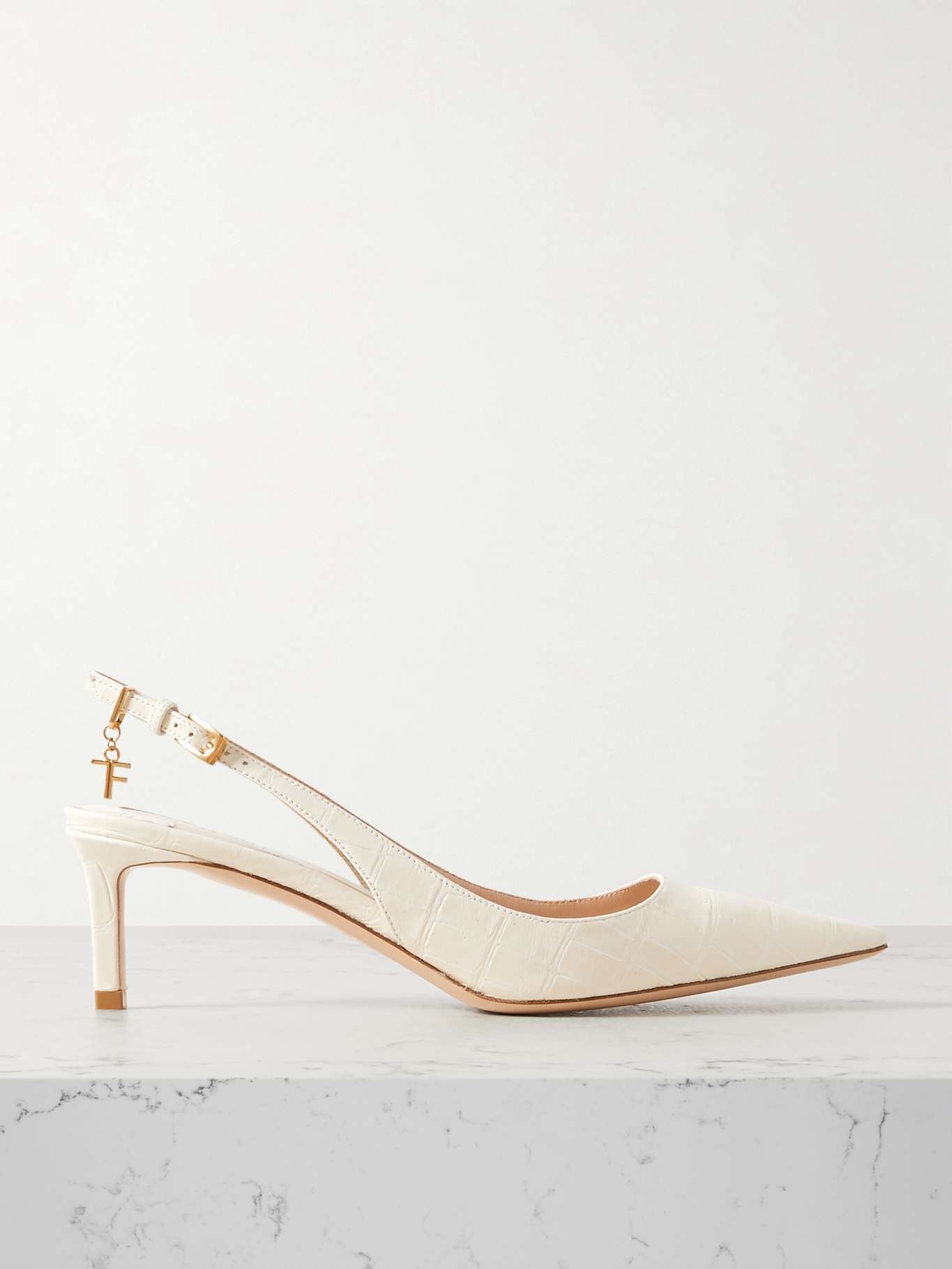EDITORS'NOTES The glamour of TOM FORD's collections covers your outfits from head-to-toe. These 'Angelina' pumps have been crafted in Italy from croc-effect leather. The slingback straps are embellished with trailing 'TF' charms that dangle like an anklet. SIZE & FIT - Fits true to size, take your normal size - Italian sizing DETAILS & CARE - Heel measures approximately 55mm/ 2 inches - Cream croc-effect leather (Goat) - Buckle-fastening slingback strap