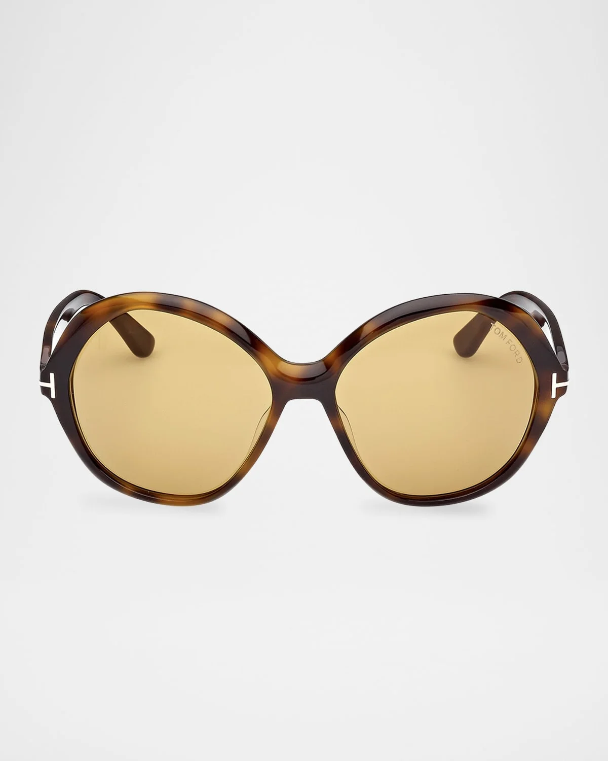 - TOM FORD "Annabelle" butterfly sunglasses - Eye/bridge/temple (in mm): 60-16-135 - Monochromatic lenses - Saddle nose bridge - Signature T logo inlays on the hinges and temples - Acetate - 100% UVA/UVB protection - Made in Italy - Proposition 65 warning for California residents