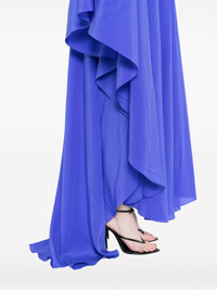 asymmetric dress Highlights - Violet blue - V-neck - Long sleeves - Open back Made in Italy Composition Silk 100% SIZE & FIT Measurement BUST 62.99 in(160 cm) HIPS 78.74 in(200 cm) LENGTH 64.56 in(164 cm) Shoulder Width 16.14 in(41 cm) WAIST 74.8 in(190 cm) Washing instructions Dry Clean Only