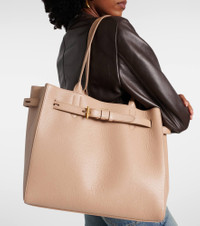 The Audrey Medium tote bag reflects Tom Ford’s blend of bold elegance and precise tailoring. Crafted from leather, this piece showcases the brand's signature T detail and a functional leather belt that adjusts the bag's size. Product Details - Material: calf leather - Lining: suede - Made in Italy - Designer color name: Light Beige - Item color: beige - Top handles - Internal details: internal zipped pocket - Closure: open top - Item number: P01038693 Size & Fit - Height 29cm-11.5" - Width 33cm-13" - Depth 15cm-6" - Length of handles 57cm-22.5"