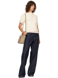 Grained calfskin top handle bag. · Twin carry handles · Adjustable and detachable crossbody strap · Logo hardware at adjustable post-stud strap · Logo stamp at face · Magnetic tab fastening at throat · Patch pocket at interior · Leather interior · H8" x W9" x D4" Supplier color: Light beige Calfskin. Made in Italy 252076F046000