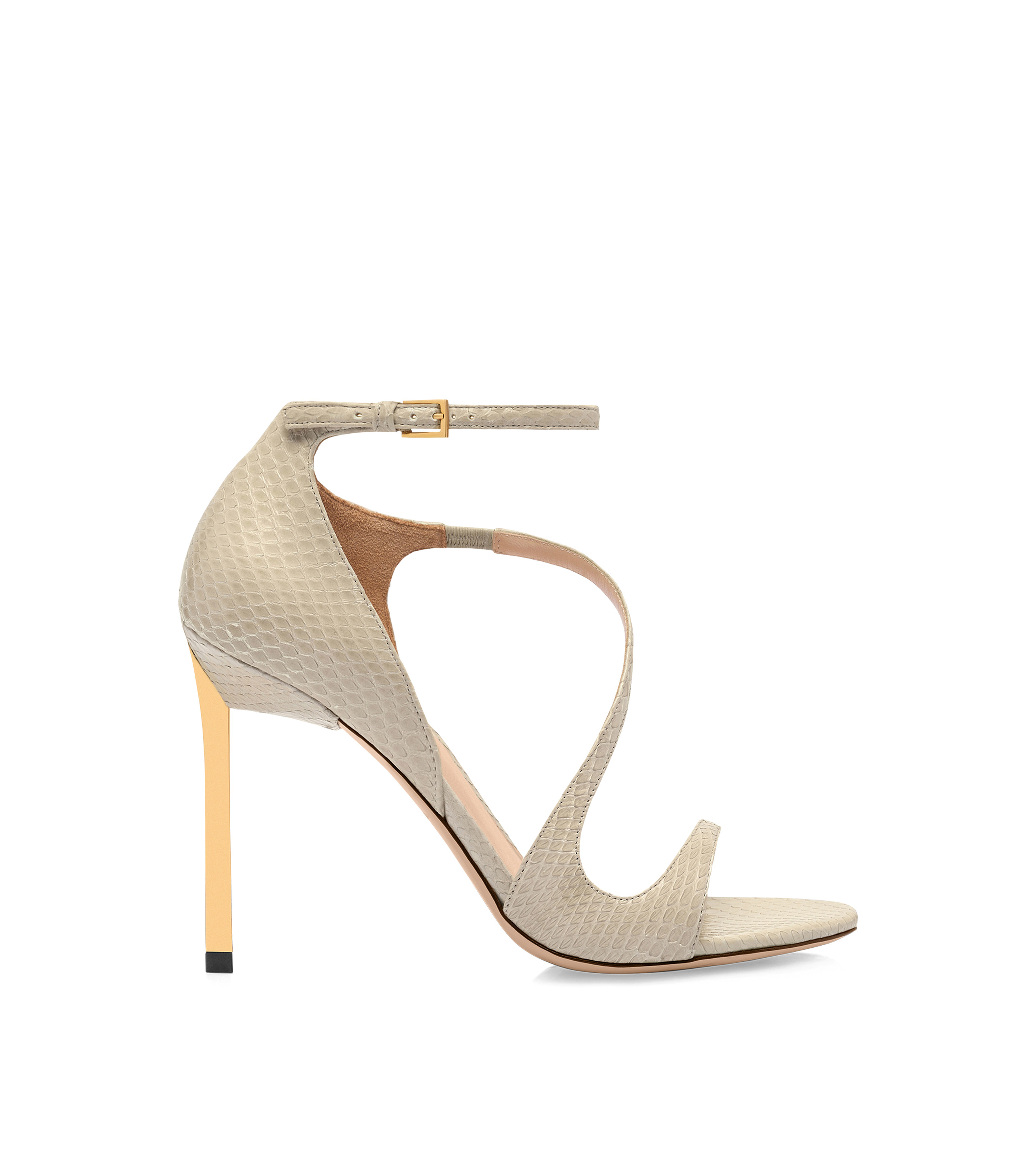 - ROUND TOE SHAPE - STAINLESS STEEL 105 MM STILETTO HEEL - BUCKLE FASTENING ANKLE STRAP - LINING: NUDE LEATHER - INSOLE: NUDE LEATHER WITH BLACK HOT-STAMPED LOGO - SOLE: LEATHER - AYERS SNAKESKIN
