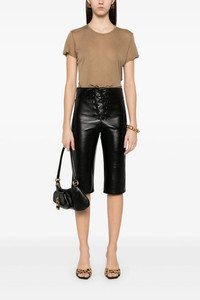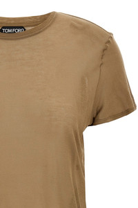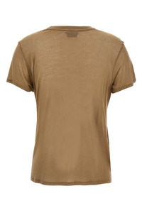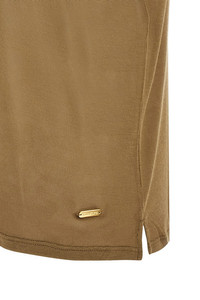 cod. TSJ567JEX139JB172 Bamboo viscose t-shirt, front metal logo plate, crew neck, short sleeves, side vents. Color: Brown Size & Fit: true to size fit Composition: 100% viscose bamboo Made in: Italy
