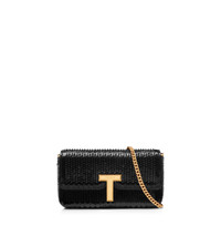 - T METAL CLOSURE WITH ENGRAVED LOGO - DETACHABLE CHAIN SHOULDER STRAP - HAND AND SHOULDER CARRY - 1 COMPARTMENT - T SHAPED DESIGN INTERNAL CREDIT CARD SLOT - LINING: LEATHER - DIMENSIONS: 18,5 X 10 X 4 CM - STRAP DROP: 25 CM - BEADED SEQUIN EMBROIDERY - MADE IN ITALY