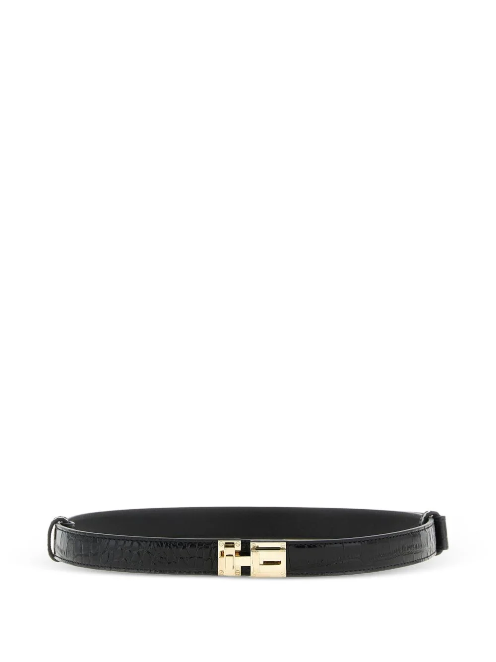 croc-print metal buckle belt Highlights - Black - Croc print - Metal buckle - T-closure - Adjustable Made in Italy Composition CALFSKIN 100%