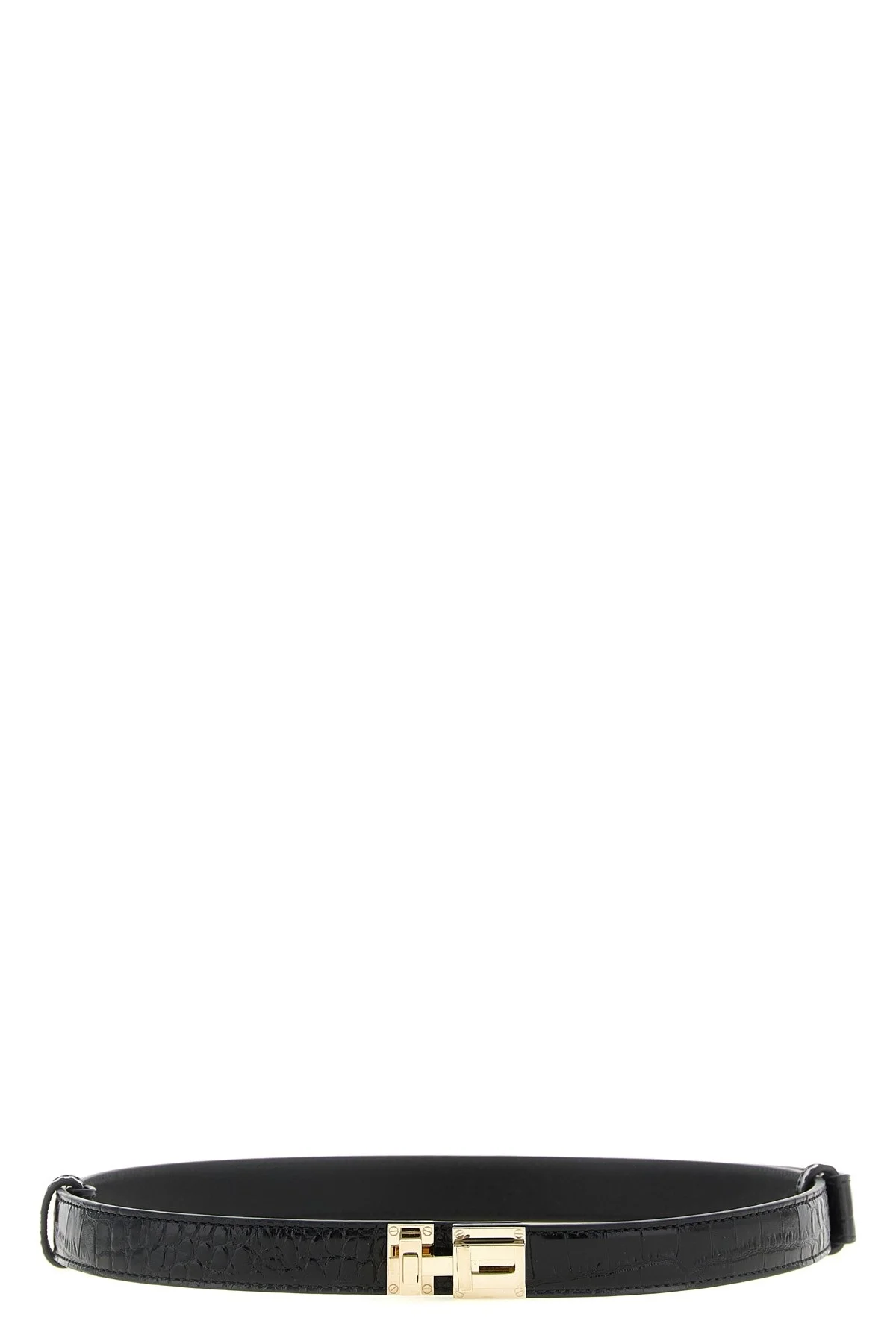 cod. WB335LCL395PNAA Croc print leather belt, metal buckle with T-closure, adjustable. Color: Black Size & Fit: H 2 cm Composition: 100% calfskin leather (Bos Taurus) Made in: Italy