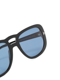 Billie tinted sunglasses black acetate blue tinted lenses oversize frame double bridge logo plaque at the arm straight arms curved tips These glasses come with a protective case. Made in Italy Composition Acetate 100% SIZE & FIT Measurement Arm Length 5.51 in(14 cm) Bridge Width 0.74 in(1.9 cm) Lens Diameter 2.2 in(5.6 cm) Total Width 5.78 in(14.7 cm)