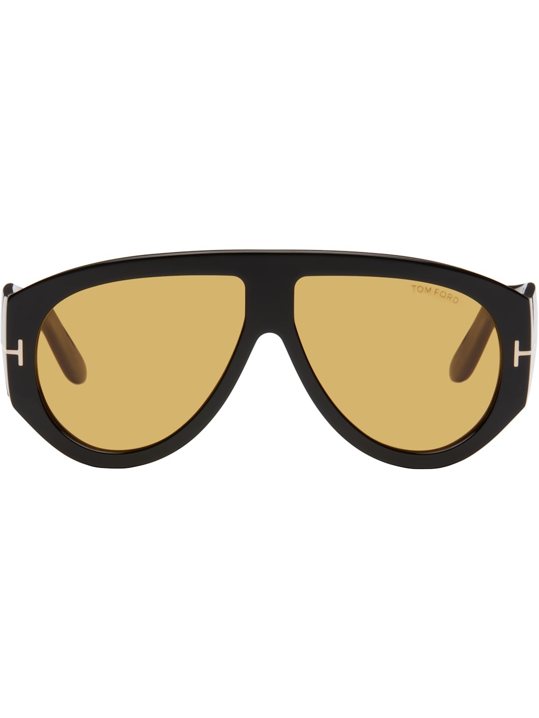 Square bio-based acetate-frame sunglasses in black. · Yellow lenses · 100% UVA/UVB protection, category 2 · Logo etched at lens · Integrated nose pads · Inset logo hardware at hinges · Inset logo plaque at temple tips · Includes case · Size: 60.12 140 Supplier color: Shiny black/Brown