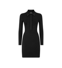 - LONG SLEEVE PLASTRON POLO MINI DRESS - COVERED DEEP BUTTON PLACKET - MOTHER OF PEARL BUTTONS - CRAFTED IN FINE STRETCH WOOL - GAUGE 14 - 76% VIRGIN WOOL 12% VISCOSE 9% POLYESTER 2% NYLON 1% POLYURETHANE