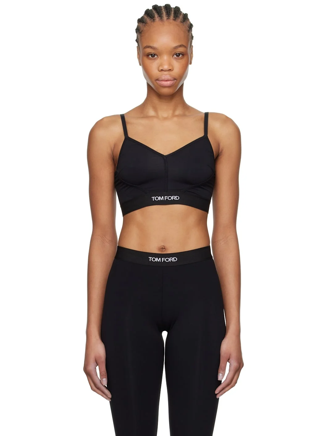 Stretch modal jersey bralette. · V-neck · Adjustable spaghetti straps · Logo-woven elasticized hem · Partial stretch jersey lining Supplier color: Black Body: 97% modal, 3% elastane. Trim: 82% polyester, 9% elastane, 9% polyamide. Made in Italy 251076F073013