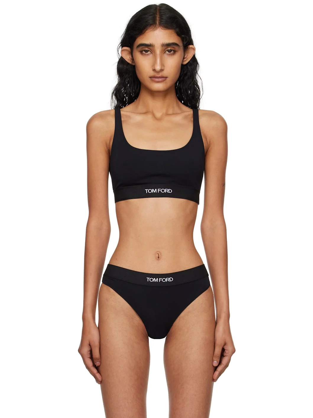 Stretch modal jersey bralette. · Scoop neck · Jacquard logo at elasticized hem · Fixed shoulder straps · Low back Supplier color: Black Body: 97% modal, 3% elastane. Trim: 82% polyester, 9% polyamide, 9% elastane. Made in Bosnia And Herzegowina 252076F073002
