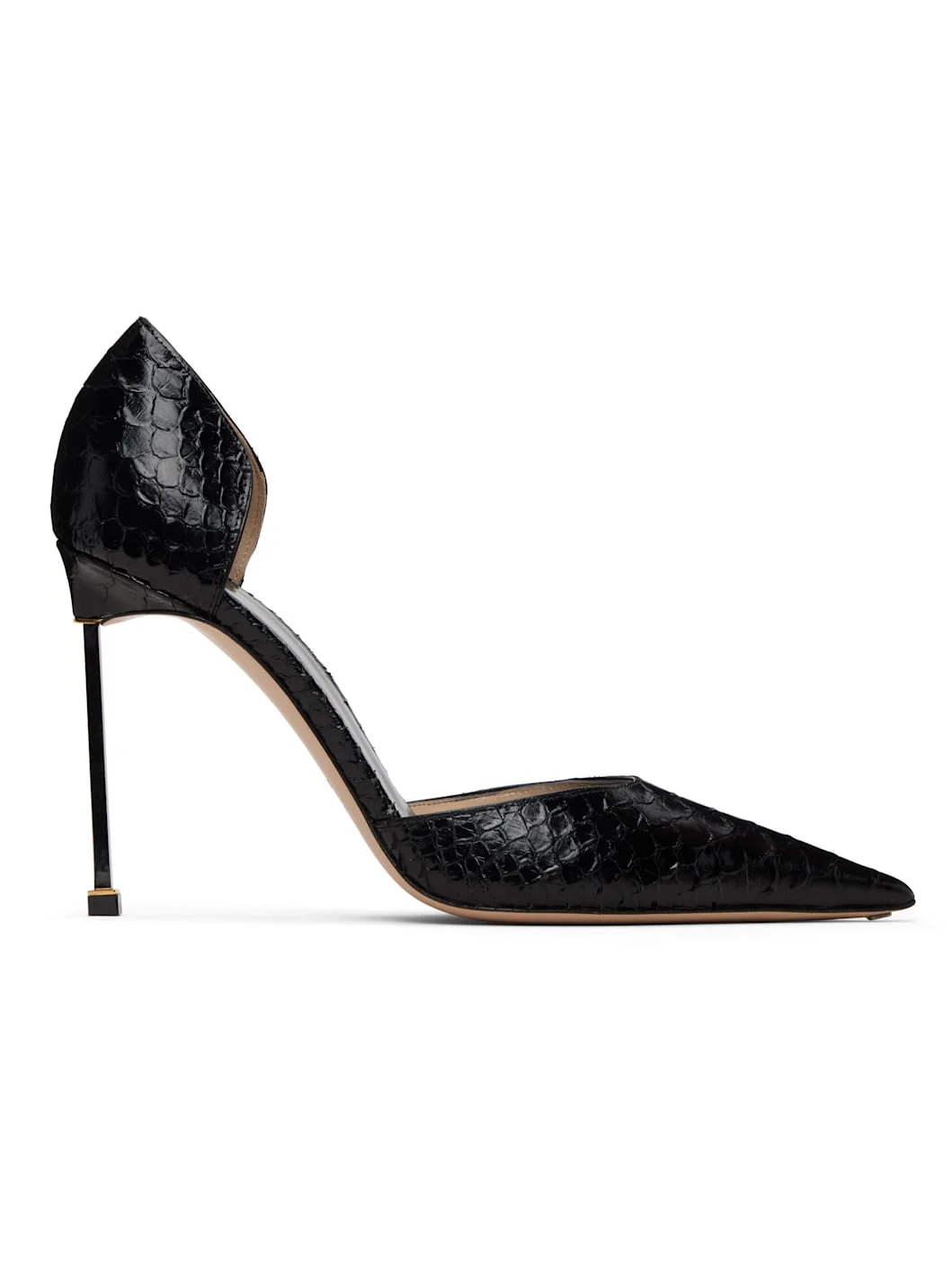 Black Semi Shiny Printed Python Spire D'Orsay Heels