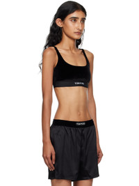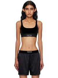 Velour bralette. · Scoop neck · Jacquard logo at elasticized hem · Fixed shoulder straps Supplier color: Black Body: 72% triacetate, 28% polyester. Trim: 82% polyester, 9% polyamide, 9% elastane. Made in Bosnia And Herzegowina 252076F073001
