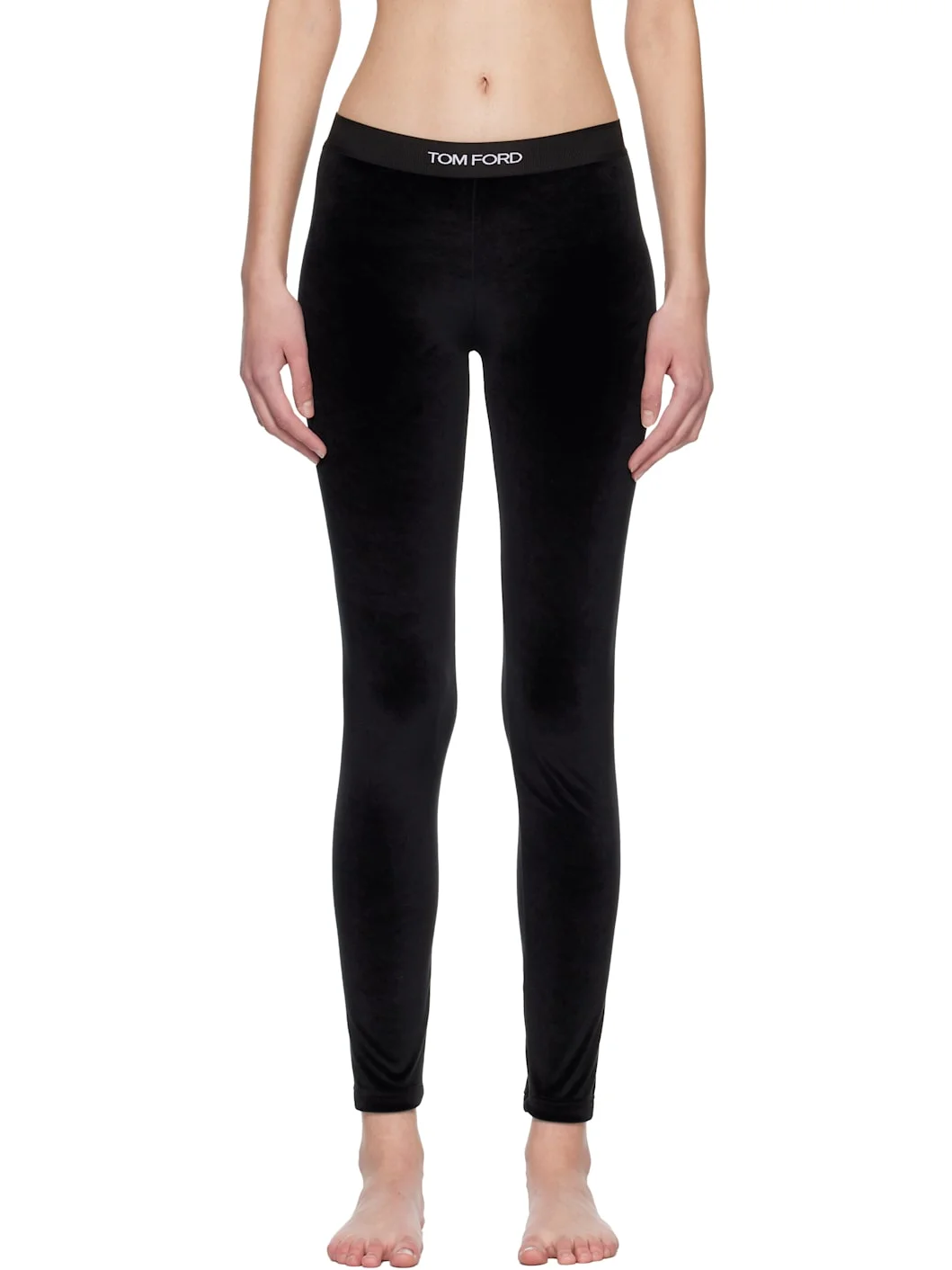 Velour leggings. Jacquard logo at elasticized waistband. Supplier color: Black Body: 72% triacetate, 28% polyester. Trim: 82% polyester, 9% polyamide, 9% elastane. Made in Italy 261076F085000