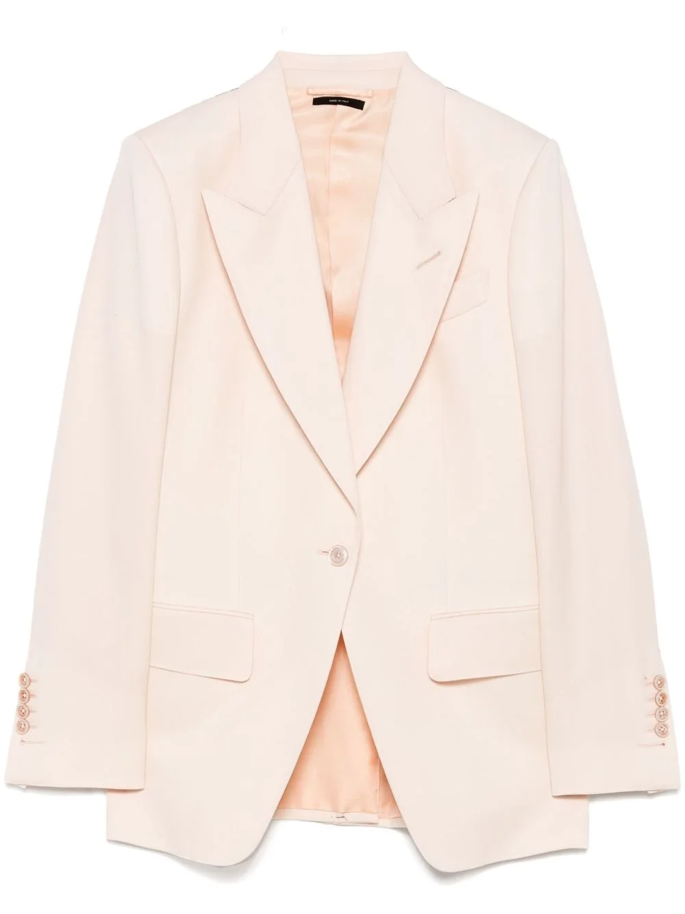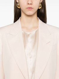 wool blazer Highlights - Light pink - Front button fastening - Chest welt pocket - Long sleeves - Two side flap pockets Made in Italy Composition Lining: Cupro 59%, Silk 41% Outer: Wool 100% SIZE & FIT Model measurements Height 5 ft 10 in(1.78 m) Bust/Chest 33.85 in(86 cm) Hips 36.61 in(93 cm) Waist 26.77 in(68 cm) FittingInformation Designed for a slim fit that sits just away from the body offering a close yet comfortable fit The internal shoulder pads offer a structured shape Made from a midweight non-stretch fabric
