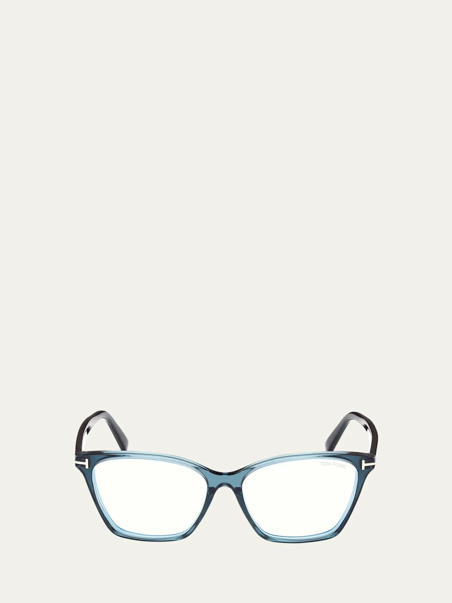 TOM FORD "FT5949-BW" blue light-blocking cat-eye glasses in titanium Lens/bridge/temple (in mm): 56-15-140 Clear lenses; logo on corner Saddle nose bridge Signature T hinges Thin, tapered arms Ready-to-wear clear lenses enhanced by a blue coating able to reduce the risks related to blue light exposure from LED screens Spot clean 100% UVA/UVB protection Made in Italy Proposition 65 warning for California residents Online Inquiries: BGS21_D4YGG| Store Inquiries: #4827583